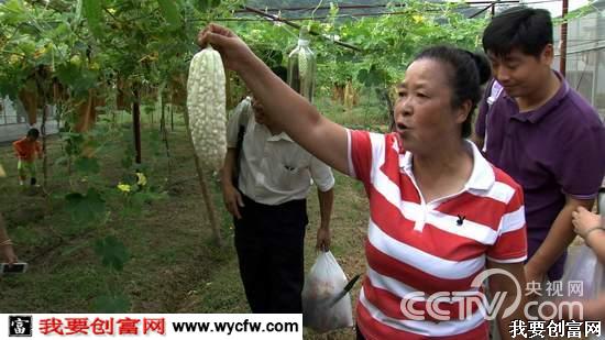 2014年9月7日上午,吴玲玲的农场来了一批客人。吴玲玲母子俩却要着重介绍她的苦瓜。苦瓜有苦味,一般人都是炒熟了吃,可吴玲玲却说她的苦瓜可以生吃。