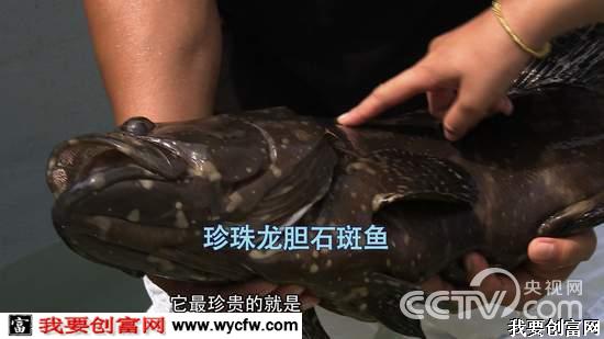洪宜展:珍珠龙胆,看我们的珍珠龙胆,又肥又漂亮。它最珍贵的就是他成长的速度跟龙胆一样,它的肉质跟老虎斑的肉质一样,它们两个的优点就集中在这条鱼身上。