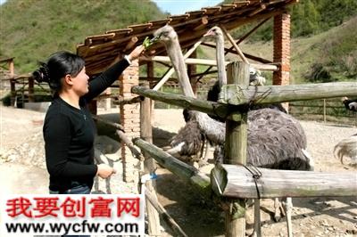陈志芬在饲喂鸵鸟 记者 黄丁宁 摄